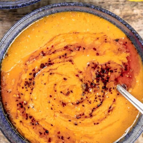 Turkish Red Lentil Soup (Kırmızı Mercimek Çorbası) is velvety, comforting, and nutritious! Plus, it’s so easy to make with lentils, a few veggies, and spices like Aleppo pepper! Naturally gluten-free, and with a simple swap for a vegan option, this Turkish lentil soup is ready in about 30 minutes.